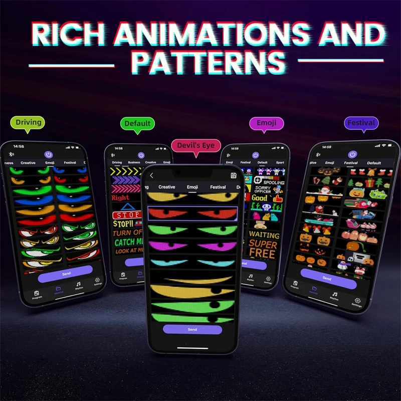 Dynamic Devil Eyes Light for Cars Truck Windshield Programmable LED Display Flexible Soft Screen Bluetooth APP Remote Control